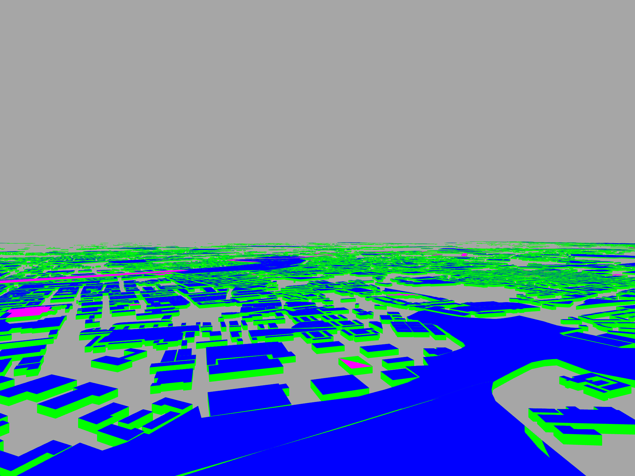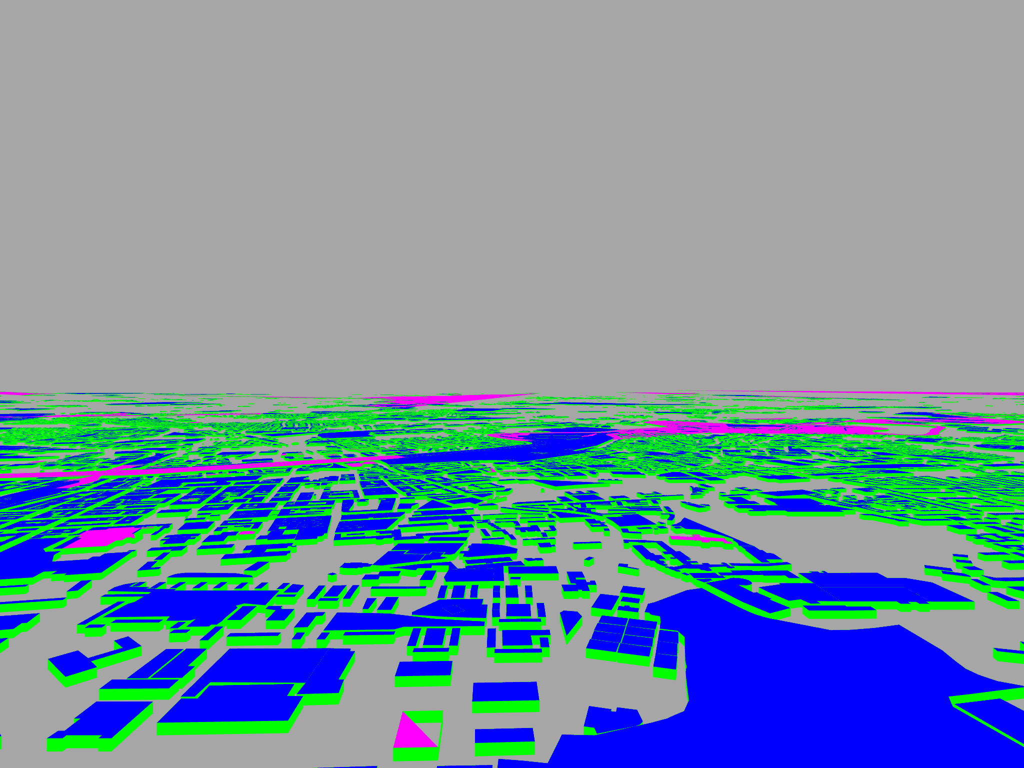 The screenshots below show the results so far! Next on the list is to calculate the normals for each vertex, so the buildings can be lit properly.